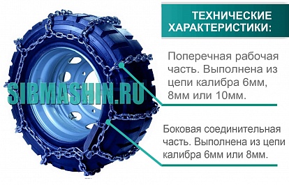 Цепи противоскольжения для погрузчиков и спецтехники тип «лесенка» изготавливаются из круглозвенных цепей калибром 6/6мм, 8/6мм, 8/8мм и 10/8мм (где первая цифра — калибр поперечной рабочей части цепи, вторая цифра — калибр боковой соединительной части цепи).