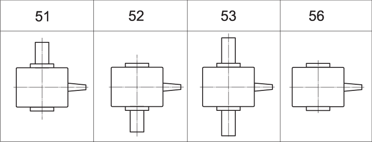 Варианты сборки редукторов Ч2 (вид сверху, червяк под колесом)