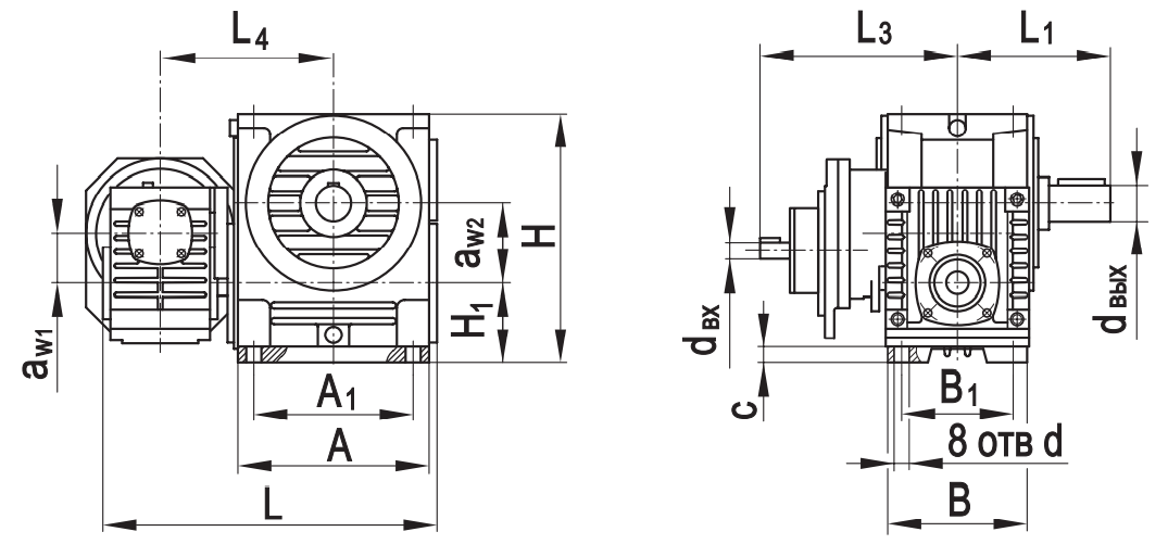 Типоразмер аW1 аW2 А А1 В В1 L* L1* L2max L3* L3 Н Н1 сd d вх dвых
