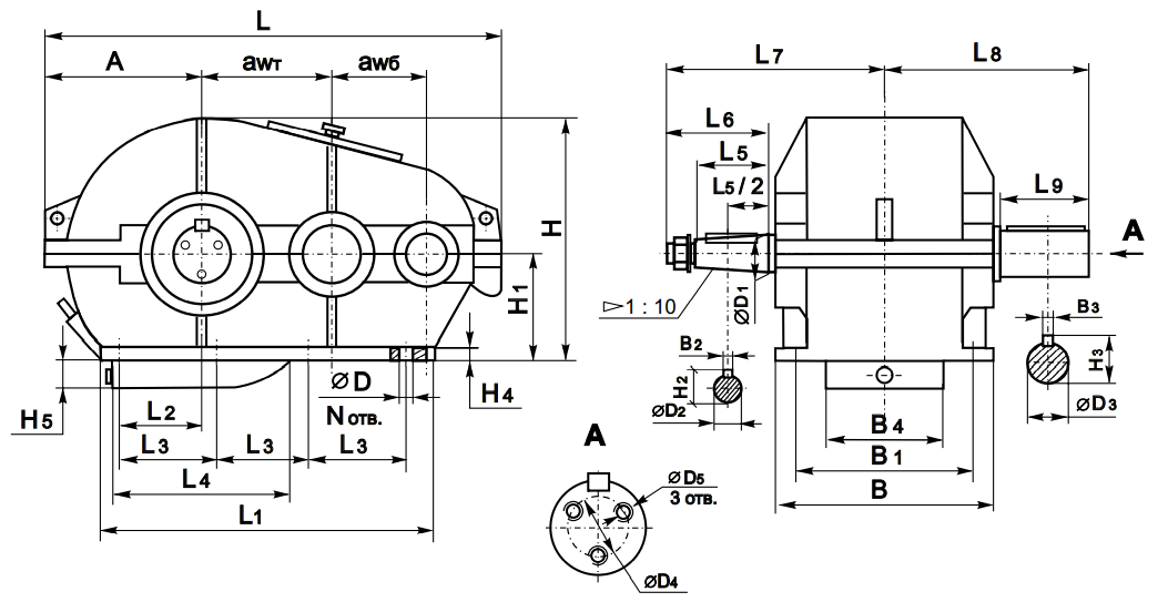 Размеры конца тихоходного вала для присоединения приборов и автоматики