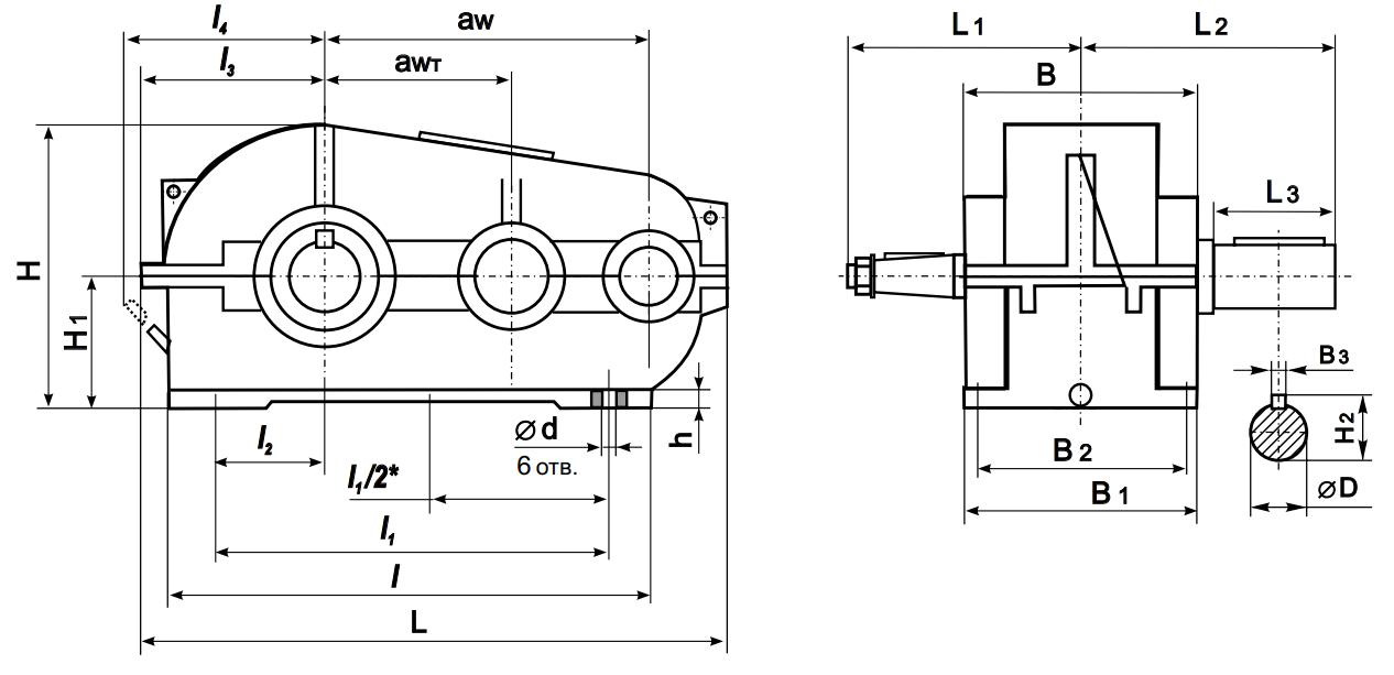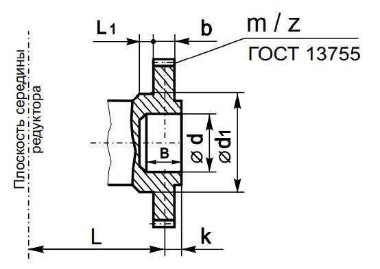Размеры концов тихоходных валов в виде зубчатой полумуфты